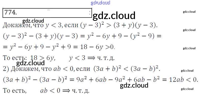 Ответ на задание 774 Учебник Алгебра за 8 (восьмой) класс Колягин, Ткачева, Федорова, Шабунин УМК 2013 ФГОС онлайн и без номера телефона.
