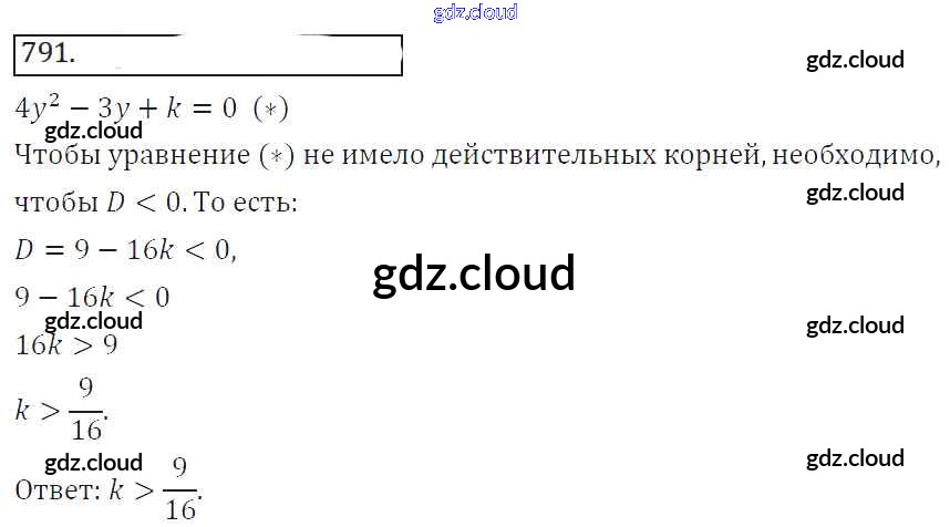 Ответ на задание 791 Учебник Алгебра за 8 (восьмой) класс Колягин, Ткачева, Федорова, Шабунин УМК 2013 ФГОС онлайн и без номера телефона.