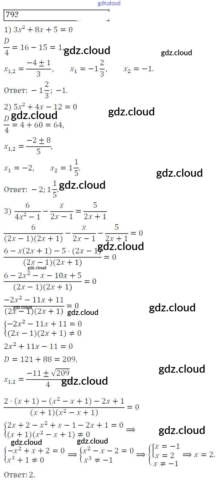 Ответ на задание 793 Учебник Алгебра за 8 (восьмой) класс Колягин, Ткачева, Федорова, Шабунин УМК 2013 ФГОС онлайн и без номера телефона.