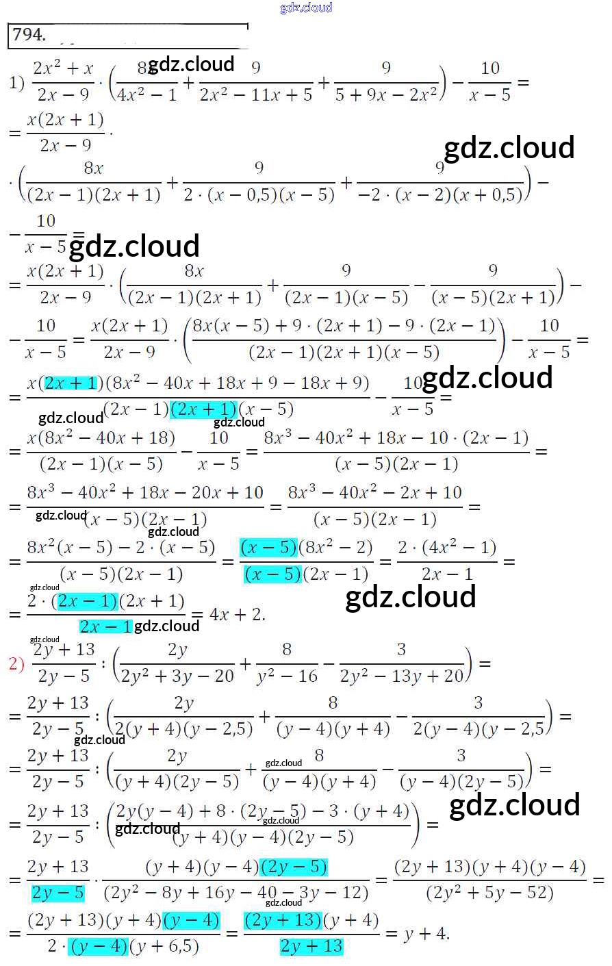 Ответ на задание 794 Учебник Алгебра за 8 (восьмой) класс Колягин, Ткачева, Федорова, Шабунин УМК 2013 ФГОС онлайн и без номера телефона.