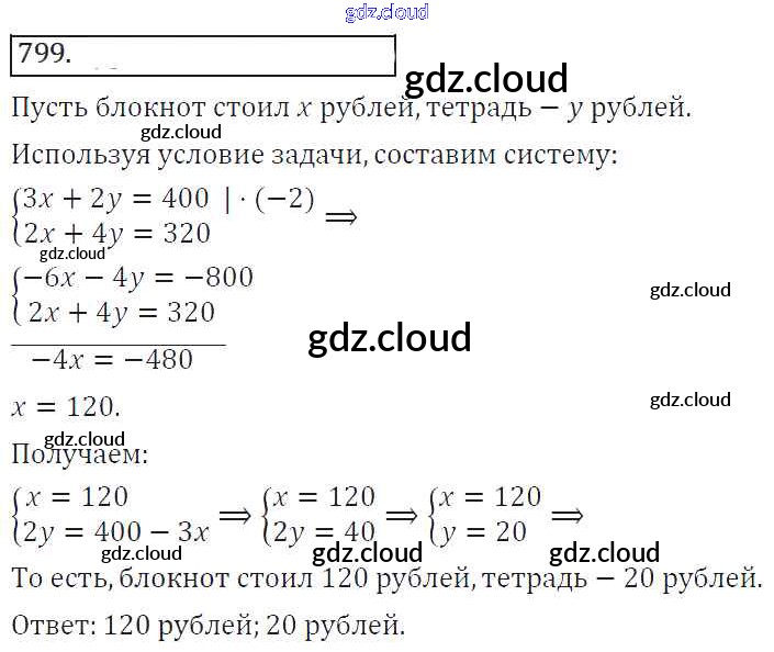 Ответ на задание 799 Учебник Алгебра за 8 (восьмой) класс Колягин, Ткачева, Федорова, Шабунин УМК 2013 ФГОС онлайн и без номера телефона.
