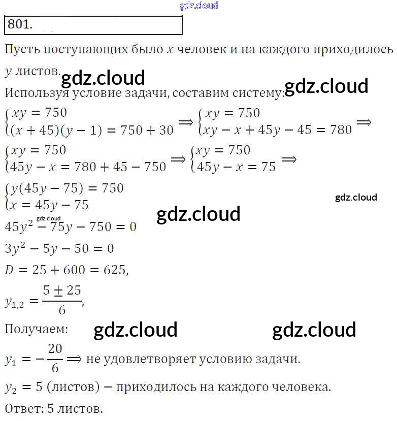 Ответ на задание 801 Учебник Алгебра за 8 (восьмой) класс Колягин, Ткачева, Федорова, Шабунин УМК 2013 ФГОС онлайн и без номера телефона.