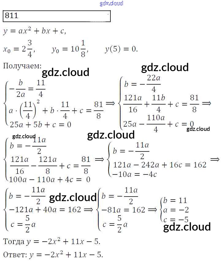 Ответ на задание 811 Учебник Алгебра за 8 (восьмой) класс Колягин, Ткачева, Федорова, Шабунин УМК 2013 ФГОС онлайн и без номера телефона.