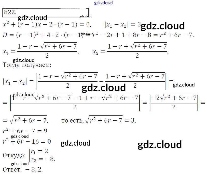 Ответ на задание 822 Учебник Алгебра за 8 (восьмой) класс Колягин, Ткачева, Федорова, Шабунин УМК 2013 ФГОС онлайн и без номера телефона.