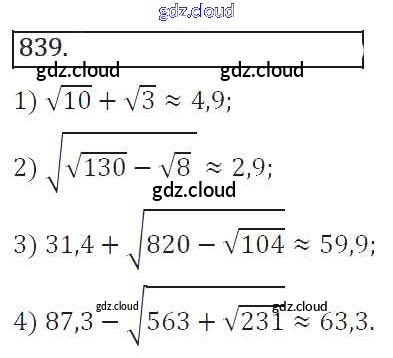 Ответ на задание 839 Учебник Алгебра за 8 (восьмой) класс Колягин, Ткачева, Федорова, Шабунин УМК 2013 ФГОС онлайн и без номера телефона.
