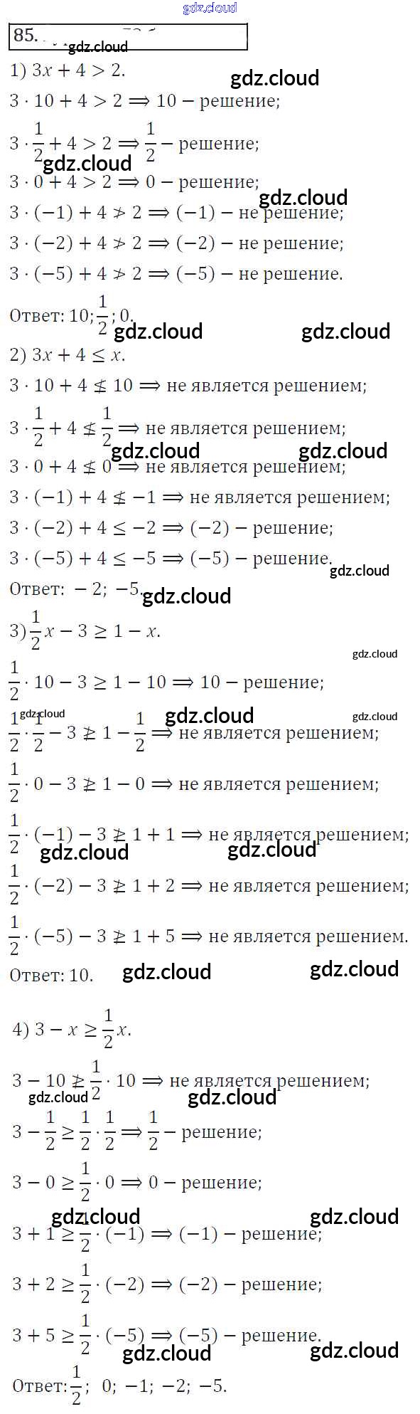 Ответ на задание 85 Учебник Алгебра за 8 (восьмой) класс Колягин, Ткачева, Федорова, Шабунин УМК 2013 ФГОС онлайн и без номера телефона.