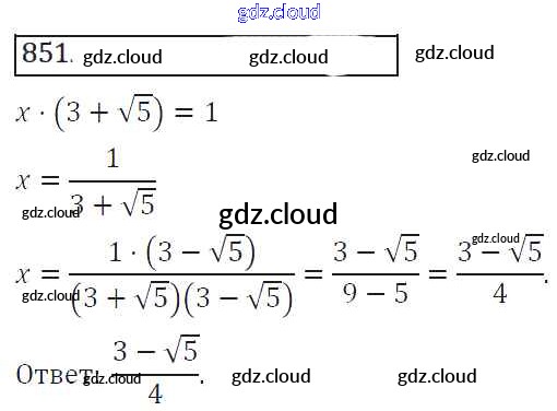Ответ на задание 851 Учебник Алгебра за 8 (восьмой) класс Колягин, Ткачева, Федорова, Шабунин УМК 2013 ФГОС онлайн и без номера телефона.
