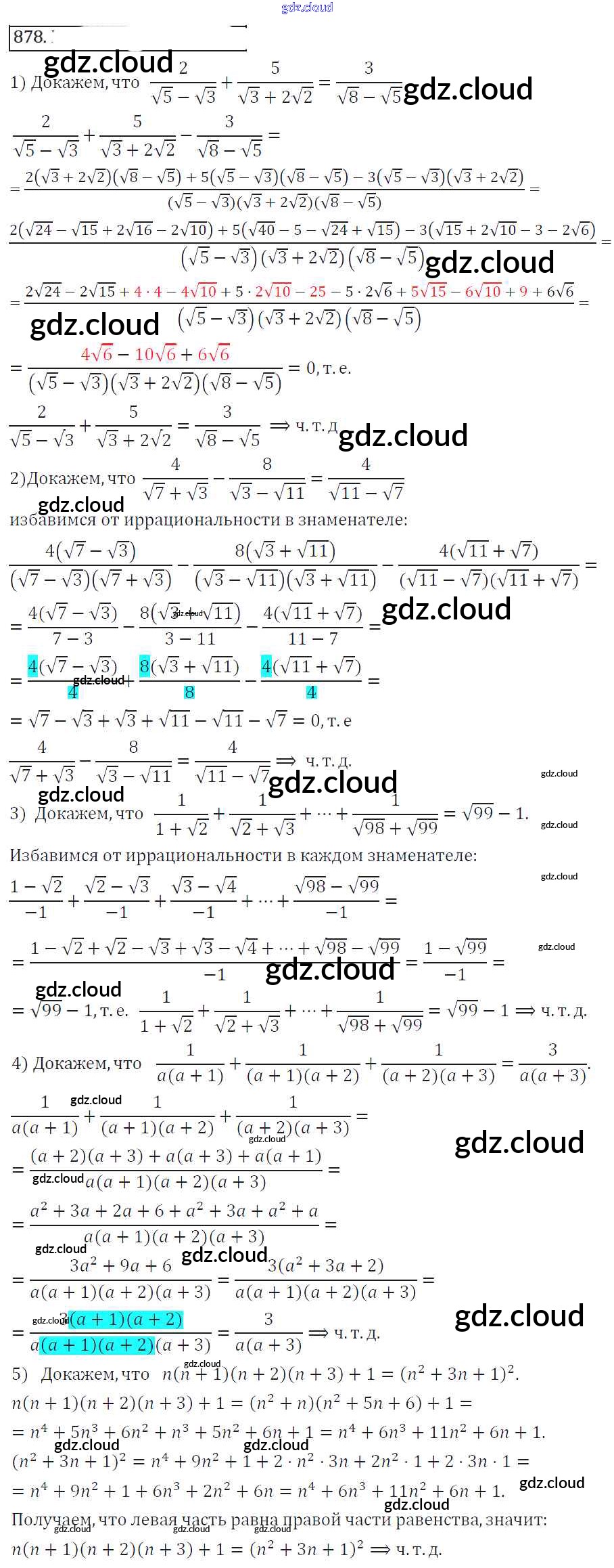 Ответ на задание 878 Учебник Алгебра за 8 (восьмой) класс Колягин, Ткачева, Федорова, Шабунин УМК 2013 ФГОС онлайн и без номера телефона.
