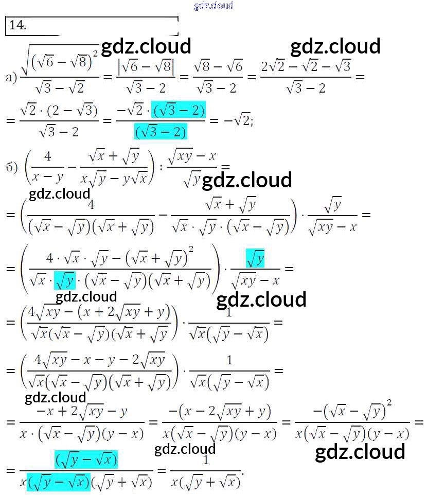 Ответ на задание 14 Учебник Алгебра за 8 (восьмой) класс Колягин, Ткачева, Федорова, Шабунин УМК 2013