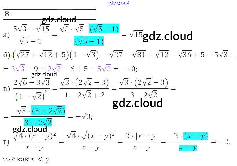 Ответ на задание 8 Учебник Алгебра за 8 (восьмой) класс Колягин, Ткачева, Федорова, Шабунин УМК 2013