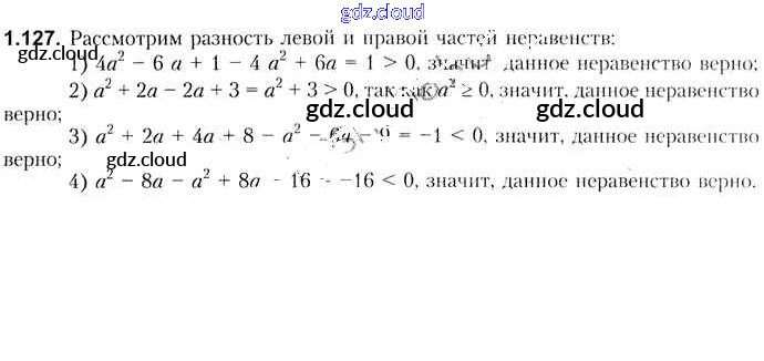 Ответ на задание 1.127 Учебник Алгебра за 8 (восьмой) класс Кузнецова, Муравьева, Шнеперман, Ящин 2015 онлайн и без номера телефона.