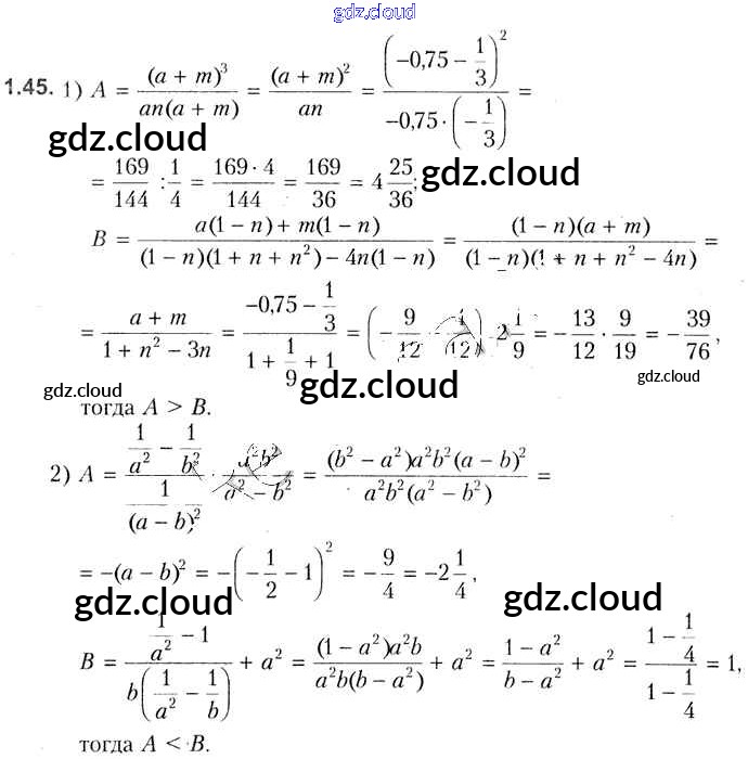 Ответ на задание 1.45 Учебник Алгебра за 8 (восьмой) класс Кузнецова, Муравьева, Шнеперман, Ящин 2015 онлайн и без номера телефона.