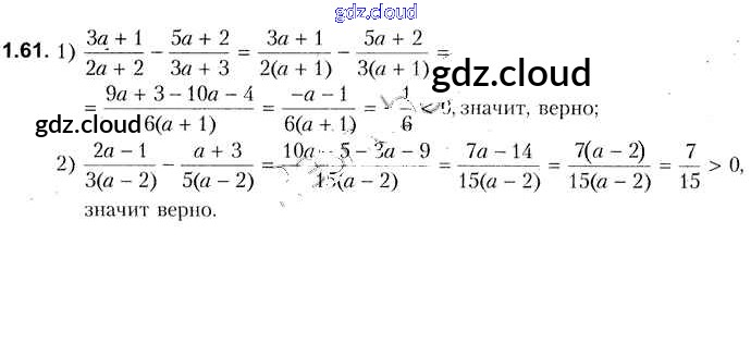 Ответ на задание 1.61 Учебник Алгебра за 8 (восьмой) класс Кузнецова, Муравьева, Шнеперман, Ящин 2015 онлайн и без номера телефона.