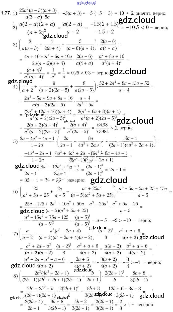 Ответ на задание 1.77 Учебник Алгебра за 8 (восьмой) класс Кузнецова, Муравьева, Шнеперман, Ящин 2015 онлайн и без номера телефона.