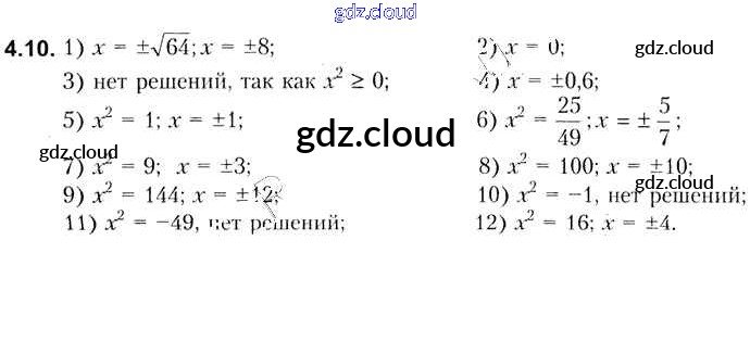 Ответ на задание 4.10 Учебник Алгебра за 8 (восьмой) класс Кузнецова, Муравьева, Шнеперман, Ящин 2015 онлайн и без номера телефона.