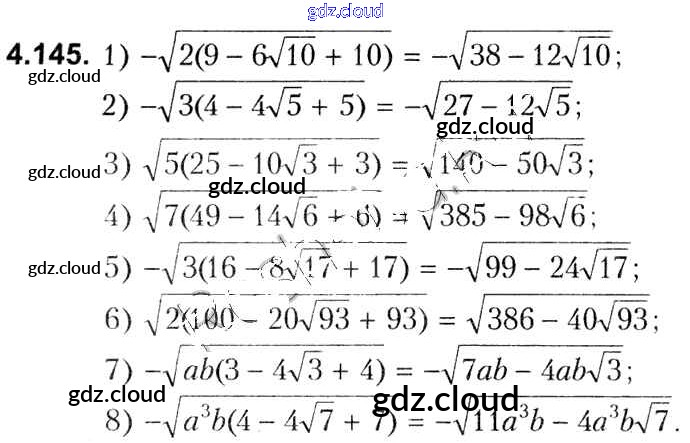 Ответ на задание 4.145 Учебник Алгебра за 8 (восьмой) класс Кузнецова, Муравьева, Шнеперман, Ящин 2015 онлайн и без номера телефона.