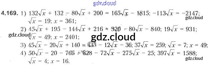Ответ на задание 4.169 Учебник Алгебра за 8 (восьмой) класс Кузнецова, Муравьева, Шнеперман, Ящин 2015 онлайн и без номера телефона.