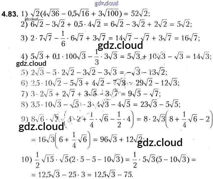 Ответ на задание 4.83 Учебник Алгебра за 8 (восьмой) класс Кузнецова, Муравьева, Шнеперман, Ящин 2015 онлайн и без номера телефона.