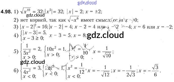 Ответ на задание 4.98 Учебник Алгебра за 8 (восьмой) класс Кузнецова, Муравьева, Шнеперман, Ящин 2015 онлайн и без номера телефона.