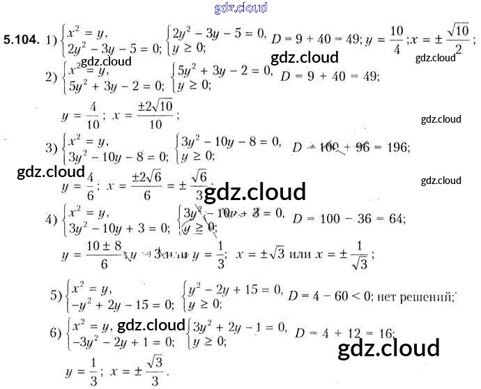 Ответ на задание 5.104 Учебник Алгебра за 8 (восьмой) класс Кузнецова, Муравьева, Шнеперман, Ящин 2015 онлайн и без номера телефона.
