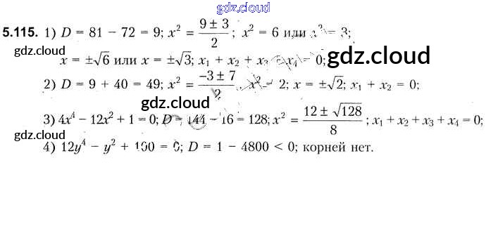 Ответ на задание 5.115 Учебник Алгебра за 8 (восьмой) класс Кузнецова, Муравьева, Шнеперман, Ящин 2015 онлайн и без номера телефона.