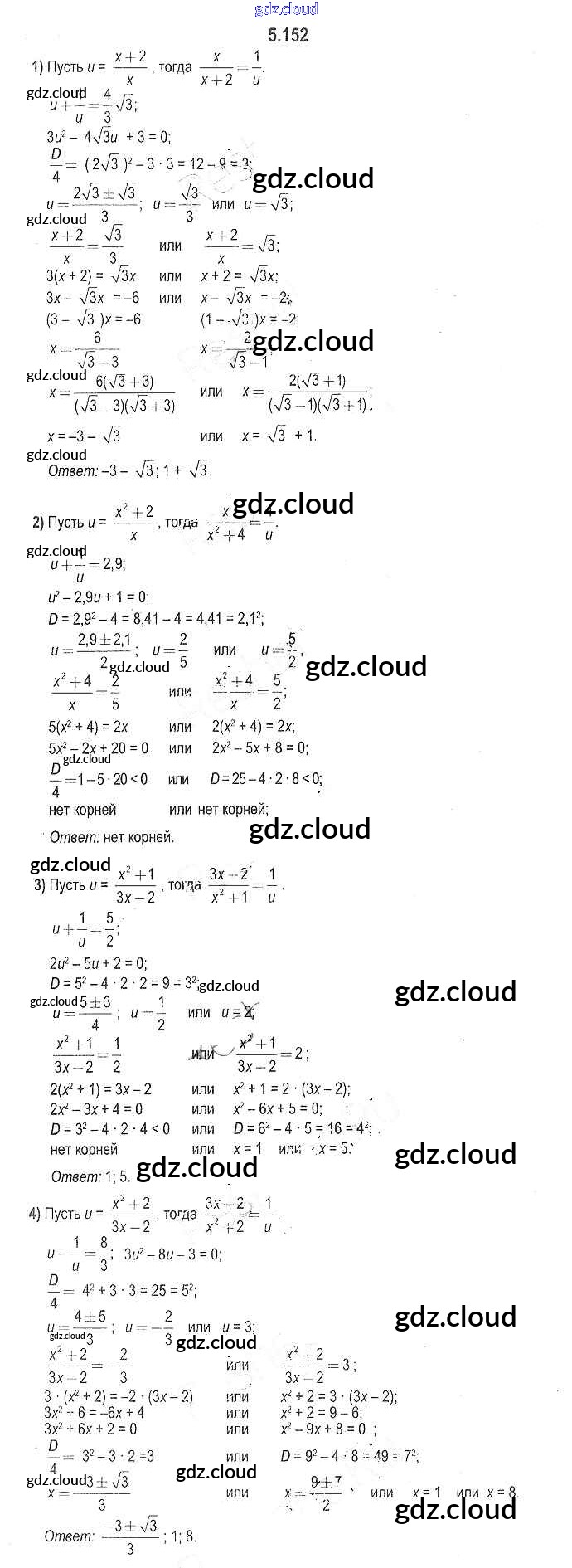 Ответ на задание 5.152 Учебник Алгебра за 8 (восьмой) класс Кузнецова, Муравьева, Шнеперман, Ящин 2015 онлайн и без номера телефона.