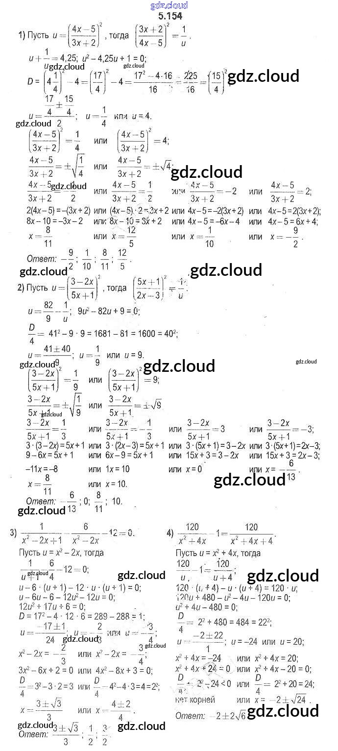 Ответ на задание 5.154 Учебник Алгебра за 8 (восьмой) класс Кузнецова, Муравьева, Шнеперман, Ящин 2015 онлайн и без номера телефона.