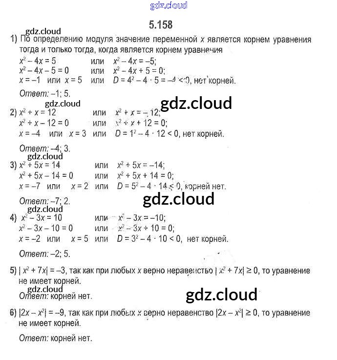 Ответ на задание 5.158 Учебник Алгебра за 8 (восьмой) класс Кузнецова, Муравьева, Шнеперман, Ящин 2015 онлайн и без номера телефона.