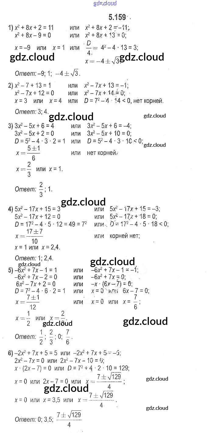 Ответ на задание 5.159 Учебник Алгебра за 8 (восьмой) класс Кузнецова, Муравьева, Шнеперман, Ящин 2015 онлайн и без номера телефона.
