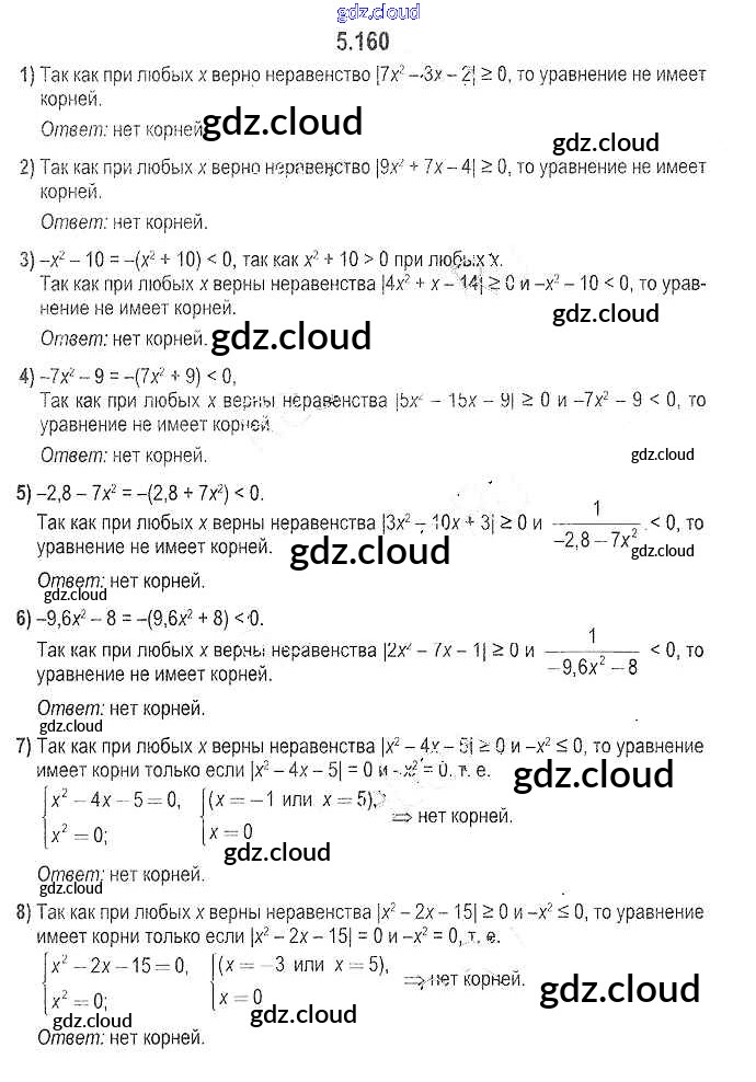 Ответ на задание 5.160 Учебник Алгебра за 8 (восьмой) класс Кузнецова, Муравьева, Шнеперман, Ящин 2015 онлайн и без номера телефона.