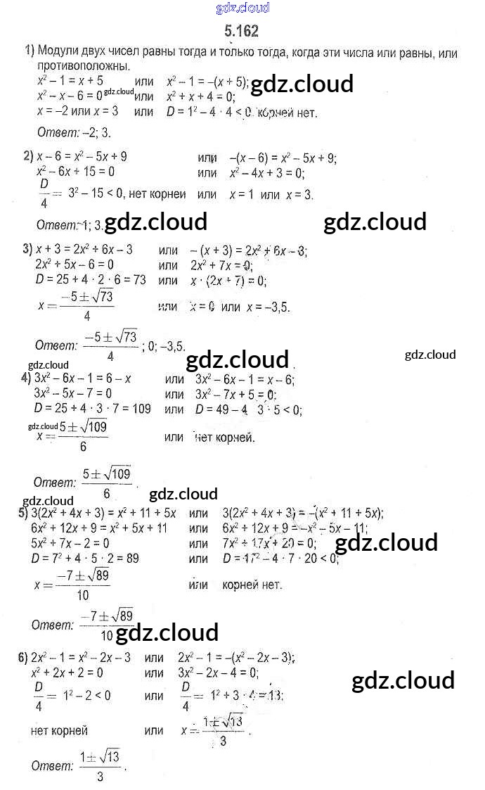Ответ на задание 5.162 Учебник Алгебра за 8 (восьмой) класс Кузнецова, Муравьева, Шнеперман, Ящин 2015 онлайн и без номера телефона.