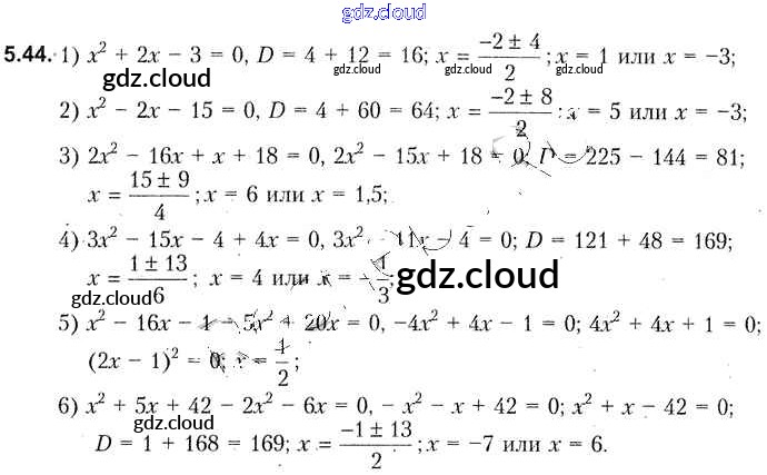 Ответ на задание 5.44 Учебник Алгебра за 8 (восьмой) класс Кузнецова, Муравьева, Шнеперман, Ящин 2015 онлайн и без номера телефона.