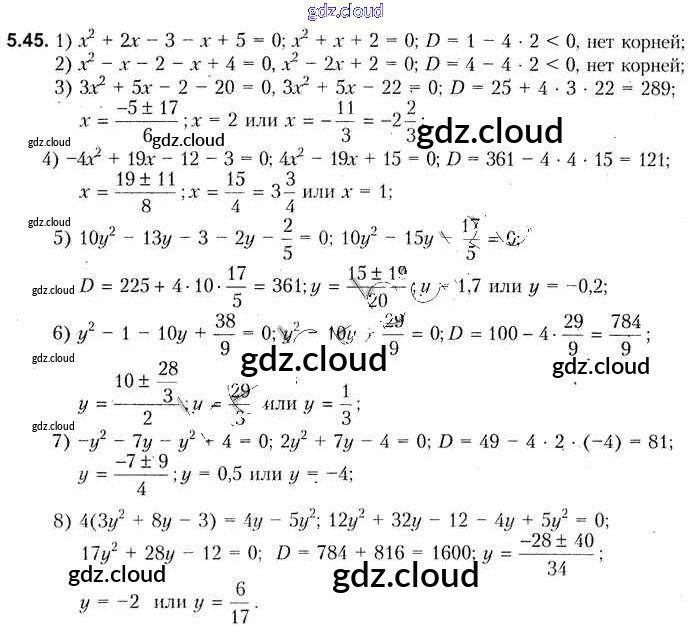 Ответ на задание 5.45 Учебник Алгебра за 8 (восьмой) класс Кузнецова, Муравьева, Шнеперман, Ящин 2015 онлайн и без номера телефона.