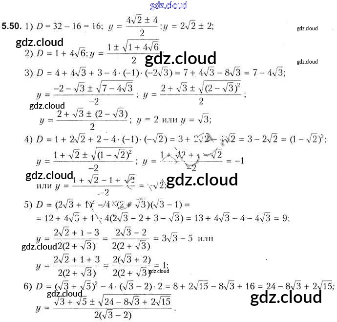 Ответ на задание 5.50 Учебник Алгебра за 8 (восьмой) класс Кузнецова, Муравьева, Шнеперман, Ящин 2015 онлайн и без номера телефона.