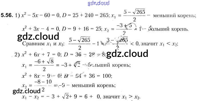 Ответ на задание 5.56 Учебник Алгебра за 8 (восьмой) класс Кузнецова, Муравьева, Шнеперман, Ящин 2015 онлайн и без номера телефона.