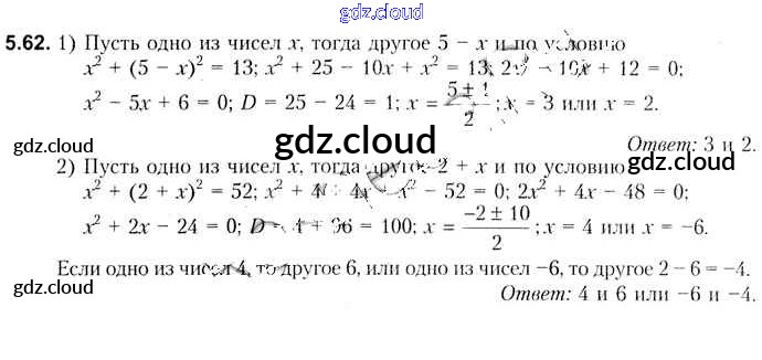 Ответ на задание 5.62 Учебник Алгебра за 8 (восьмой) класс Кузнецова, Муравьева, Шнеперман, Ящин 2015 онлайн и без номера телефона.
