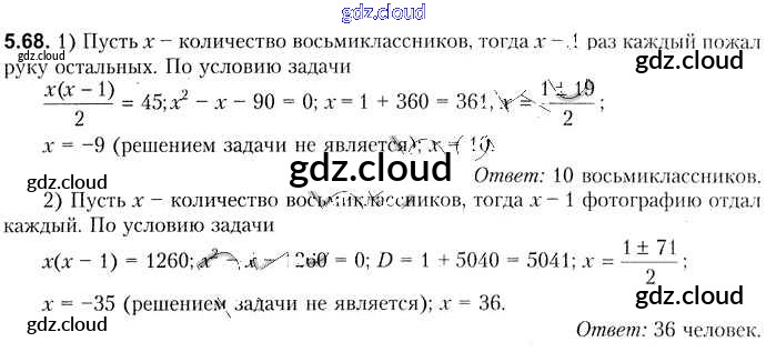 Ответ на задание 5.68 Учебник Алгебра за 8 (восьмой) класс Кузнецова, Муравьева, Шнеперман, Ящин 2015 онлайн и без номера телефона.