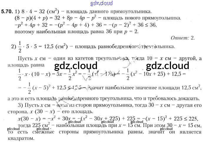Ответ на задание 5.70 Учебник Алгебра за 8 (восьмой) класс Кузнецова, Муравьева, Шнеперман, Ящин 2015 онлайн и без номера телефона.