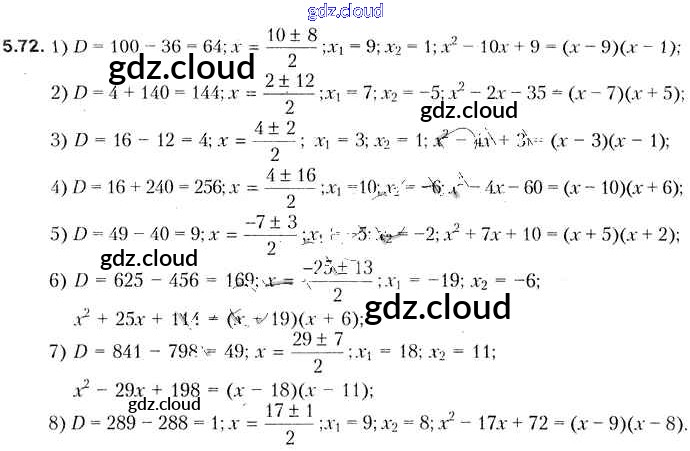 Ответ на задание 5.72 Учебник Алгебра за 8 (восьмой) класс Кузнецова, Муравьева, Шнеперман, Ящин 2015 онлайн и без номера телефона.