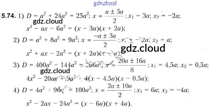 Ответ на задание 5.74 Учебник Алгебра за 8 (восьмой) класс Кузнецова, Муравьева, Шнеперман, Ящин 2015 онлайн и без номера телефона.