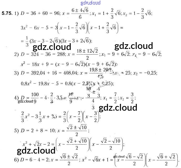 Ответ на задание 5.75 Учебник Алгебра за 8 (восьмой) класс Кузнецова, Муравьева, Шнеперман, Ящин 2015 онлайн и без номера телефона.