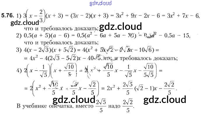 Ответ на задание 5.76 Учебник Алгебра за 8 (восьмой) класс Кузнецова, Муравьева, Шнеперман, Ящин 2015 онлайн и без номера телефона.