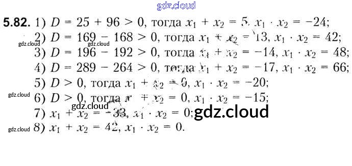 Ответ на задание 5.82 Учебник Алгебра за 8 (восьмой) класс Кузнецова, Муравьева, Шнеперман, Ящин 2015 онлайн и без номера телефона.