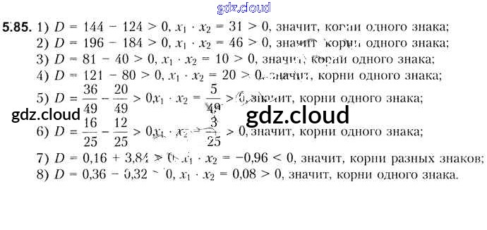 Ответ на задание 5.85 Учебник Алгебра за 8 (восьмой) класс Кузнецова, Муравьева, Шнеперман, Ящин 2015 онлайн и без номера телефона.