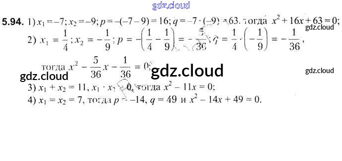 Ответ на задание 5.94 Учебник Алгебра за 8 (восьмой) класс Кузнецова, Муравьева, Шнеперман, Ящин 2015 онлайн и без номера телефона.