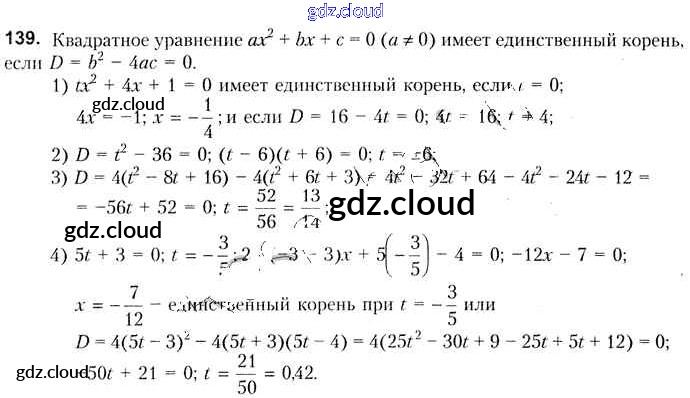 Ответ на задание 139 Учебник Алгебра за 8 (восьмой) класс Кузнецова, Муравьева, Шнеперман, Ящин 2015 онлайн и без номера телефона.