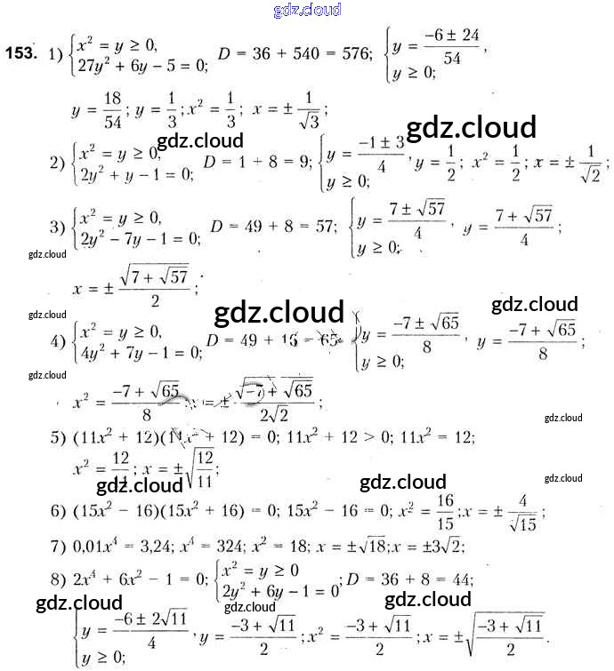 Ответ на задание 153 Учебник Алгебра за 8 (восьмой) класс Кузнецова, Муравьева, Шнеперман, Ящин 2015 онлайн и без номера телефона.