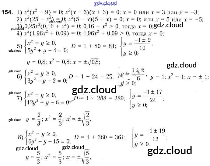 Ответ на задание 154 Учебник Алгебра за 8 (восьмой) класс Кузнецова, Муравьева, Шнеперман, Ящин 2015 онлайн и без номера телефона.
