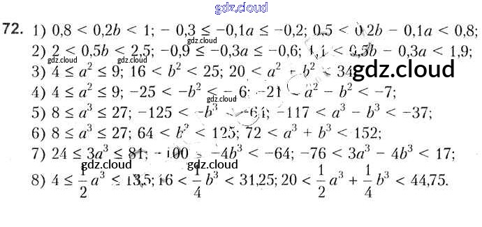 Ответ на задание 72 Учебник Алгебра за 8 (восьмой) класс Кузнецова, Муравьева, Шнеперман, Ящин 2015 онлайн и без номера телефона.