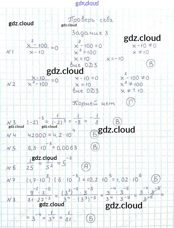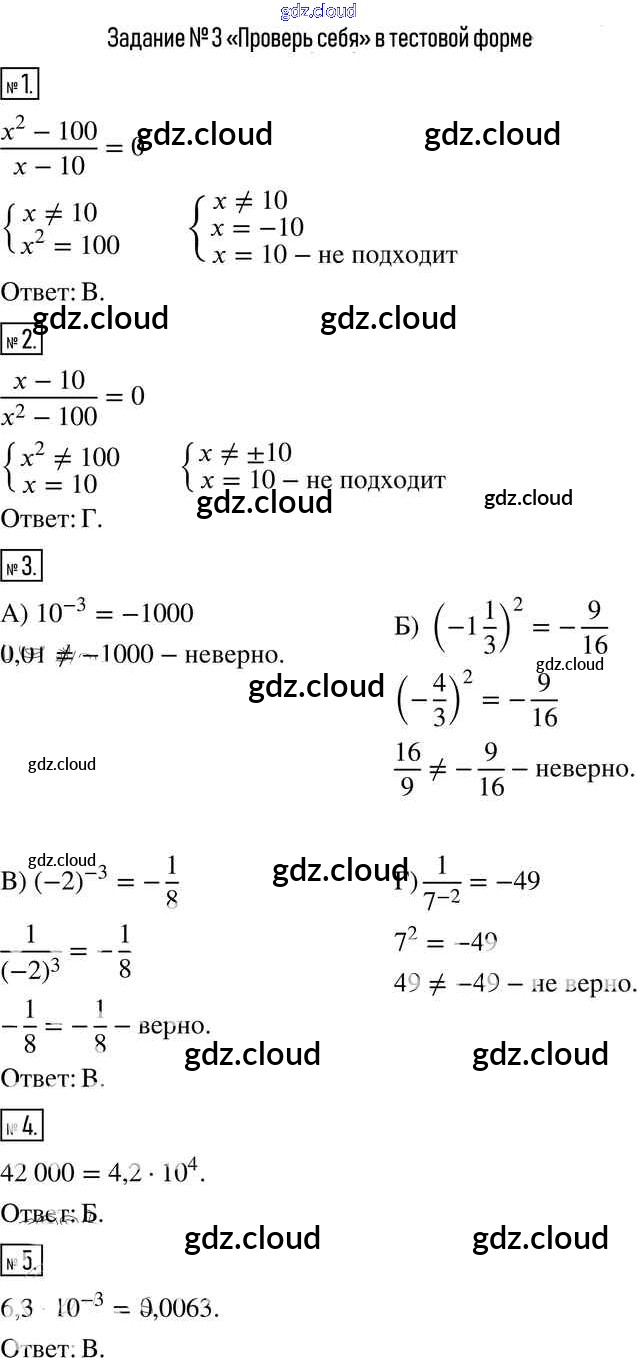 Проверь себя №3 Ответы к Главе 1. Рациональные выражения по Алгебре 8 класс Учебник Мерзляк Алгоритм успеха Вентана-граф